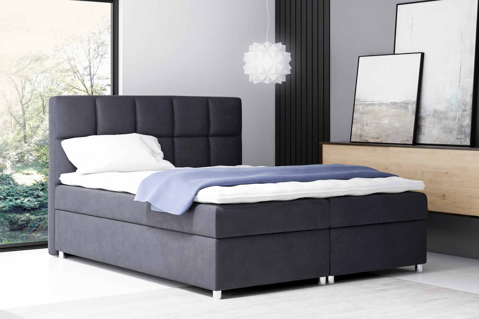 Wygodne nowoczesne łóżko kontynentalne wykonane z najwyższej jakości materiałów.