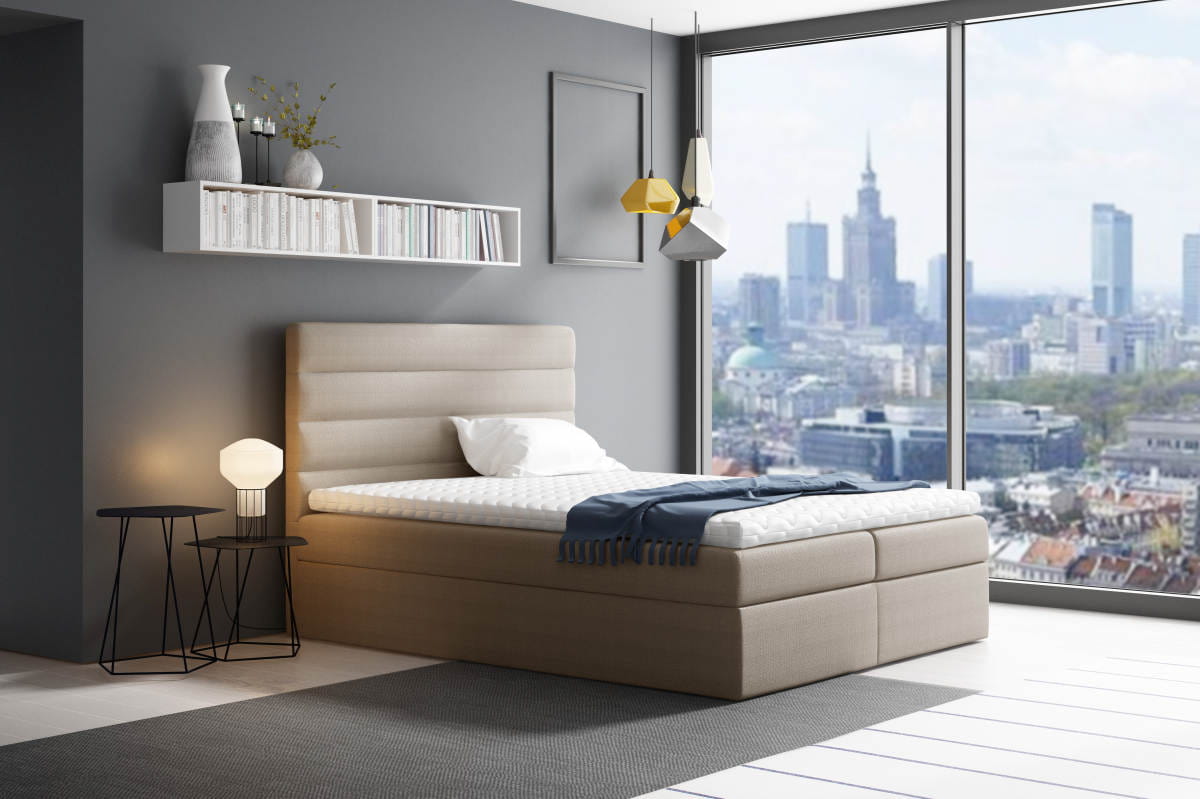 Wygodne nowoczesne łóżko kontynentalne wykonane z najwyższej jakości materiałów.
