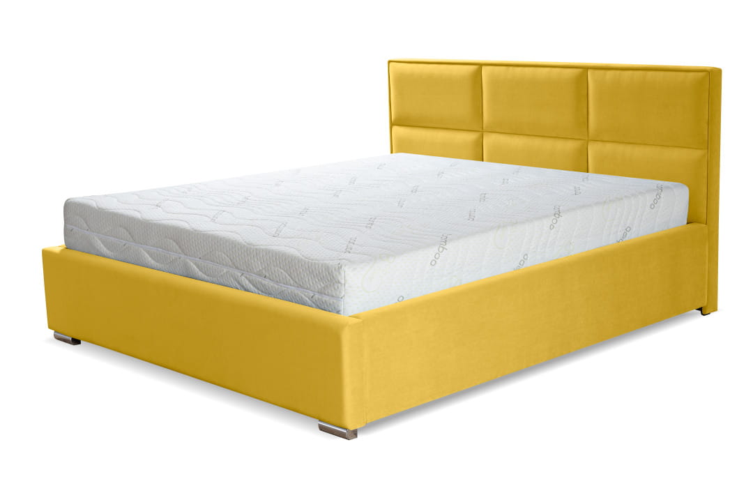 Łóżko tapicerowane Imbir to mebel do nowoczesnej sypialni. Prosta, minimalistyczna konstrukcja została wzbogacona o efektowne wezgłowie z przeszyciami w kształcie prostokątów. Całość wykonana jest z dbałością o każdy detal. Doskonałej jakości materiały gwarantują, że łóżko Imbir to produkt wart swojej ceny. Metalowa rama i solidne, gazowe siłowniki sprawiają, że korzystanie zarówno z łóżka jak i pojemnika na pościel jest przyjemne i komfortowe.