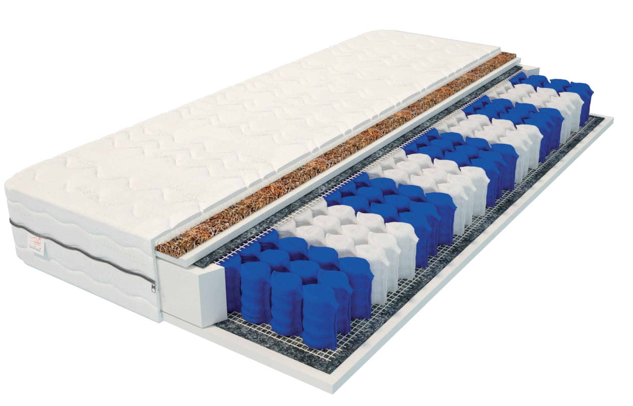 Materac FAMILY ze sprężyną kieszeniową o rozmiarze 180x200 cm. Sprężynki są umieszczone w materiałowej kieszonce. Takie zastosowanie daje możliwość wyprężyć w ryzach sprężynę, a w konsekwencji cały materac. Materace kieszeniowe wzmocnione są w piankę poliuretanową co daje nam wygodne użytkowanie. Plusem takich produktów jest to, że lepiej zgrywają się z naszym ciałem. Nasze materace kieszeniowe z certyfikatem jakości działają punktowo podczas odpoczynku. To termoplastyczny materac na którym można ułożyć różnego gatunku materiał. Według nas materace kieszeniowe to idealne rozwiązanie dla dwojga. Materac Family możemy zaliczyć do grypy H4 co oznacza, że jest to materac twardy.